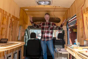 Andreas har återupptagit arbetet med att inreda sin Ford Transit som han visade i halvfärdigt skick på Elmia Husvagn Husbil