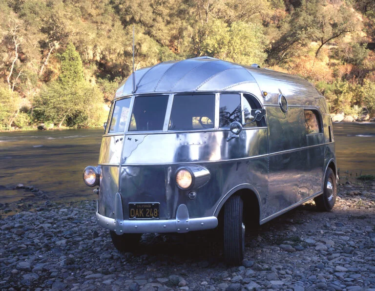 Denna klenod är en Hunt Hollywood Housecar. Den tillverkades i slutet av fyrtiotalet och är den enda i sitt slag. Den mäter knappa sex meter