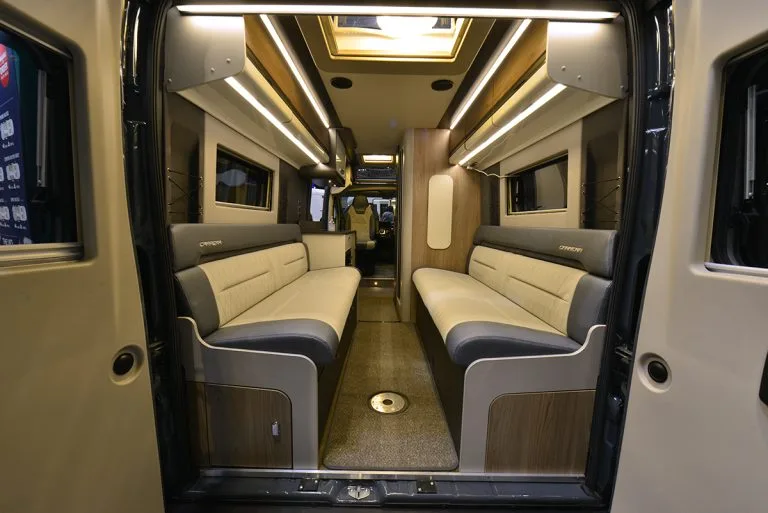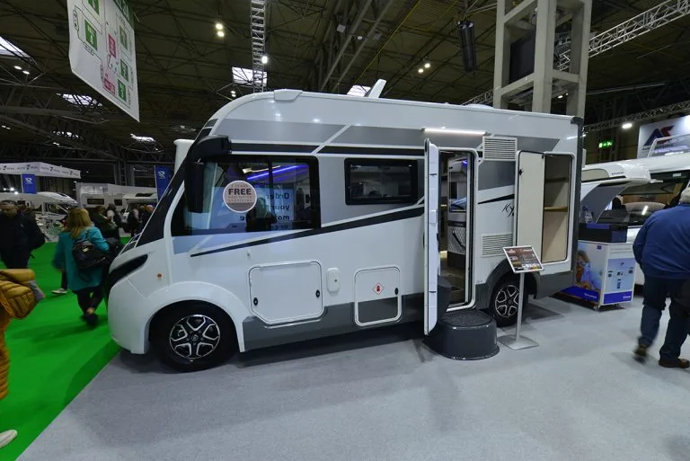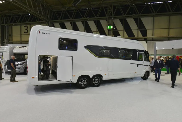 Förra året visade man upp den korta Grande Frontier GF-70. Den första serieproducerade helintegrerade Engelska husbilen. I år stod där en treaxlad pjäs på nästan