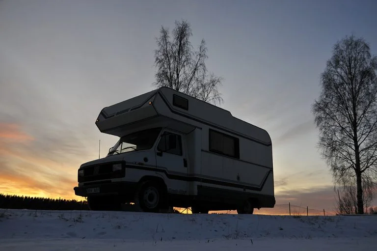 Liten, nätt och kall Då en av våra planerade vintertestbilar lämnade walkover lånade vi med kort varsel in en äldre husbil för att se hur