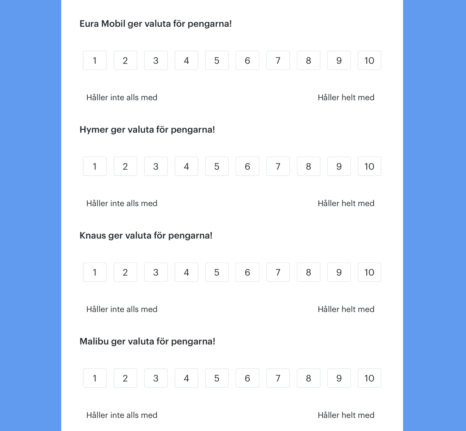 Enkäten avslutas med att du fritt kan ge din syn på fabrikaten, själva enkäten eller något annat som du kom att tänka på då du gjorde enkäten.