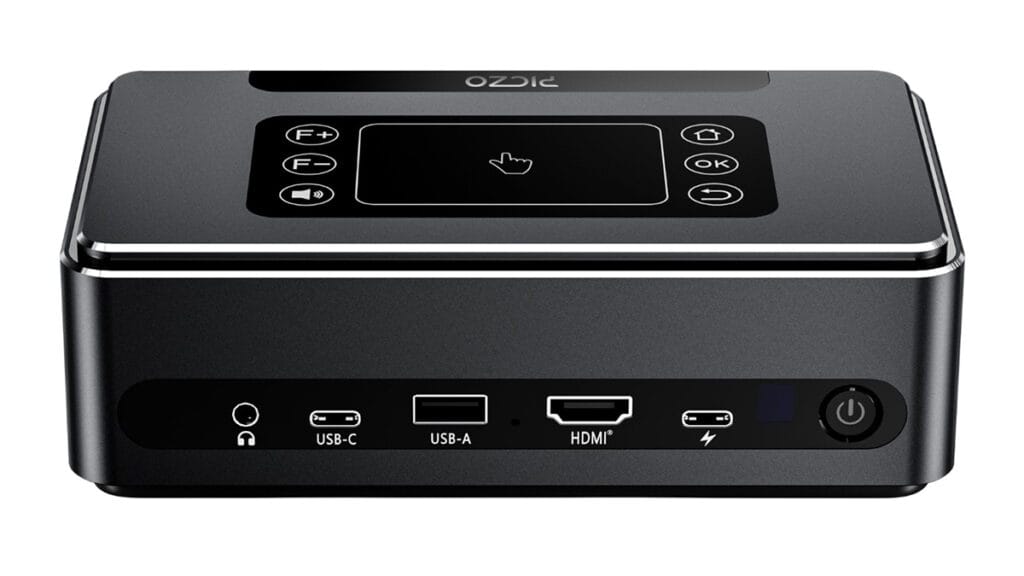 Här får du äkta 1080p-upplösning, vilket ger en skarp och kristallklar bild, även i stort format. Projektorn väger bara 684 gram och är lite större än en mobiltelefon. Den får plats i jackfickan – men levererar upp till 200 tum bild.
