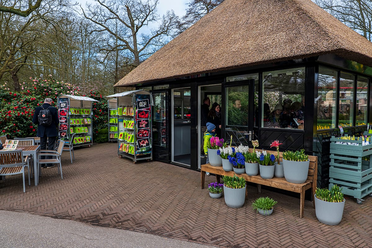 I de små kioskerna säljs lökar och souvenirer. Många visar upp sina mobilbilder för personalen och visas till rätt lökpåse.