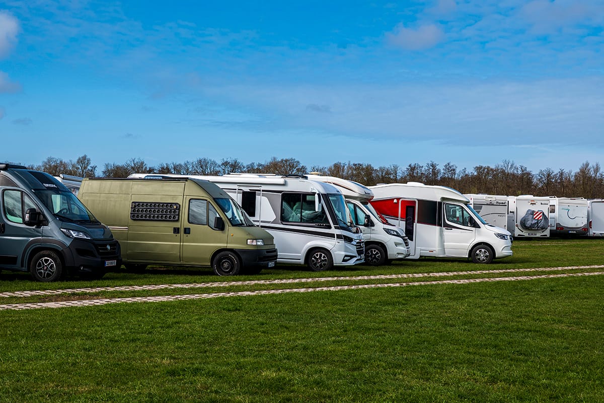 Det finns bara ett fåtal dedikerade husbilsplatser, på deras sida är rådet att anlända tidigt. Men ägarna är flexibla, finns det utrymme så är du välkommen. Nu, innan båtsäsongen, står det husbilar lite varstans på området. Man har tillgång till el, sopor och vatten.