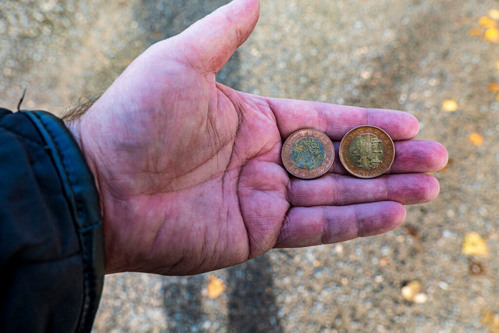 Två stycken mynt a 50 tjeckiska kronor. Ett mynt för tur och ett för retur.