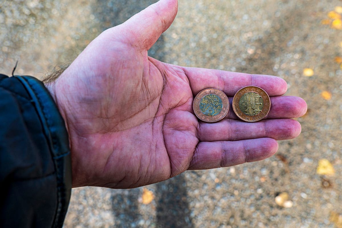Båten till andra sidan tar inte kort. Inte heller Euro. Färden kostar 40 CZK enkel resa. I receptionen köper jag 100 CZK och får till min förvåning två mynt. 50 CZK är lite drygt 20 SEK. Tänk om vi hade tjugokronorsmynt.