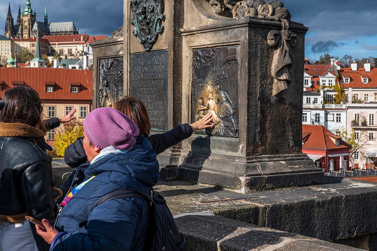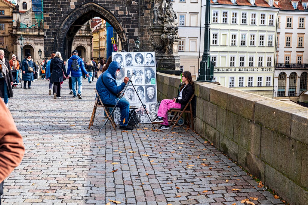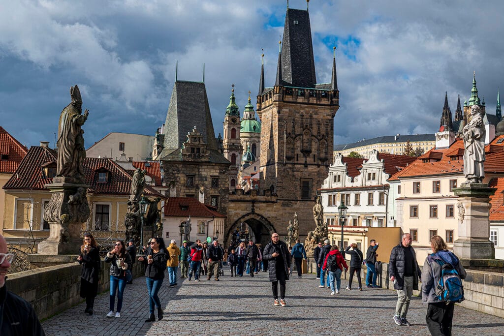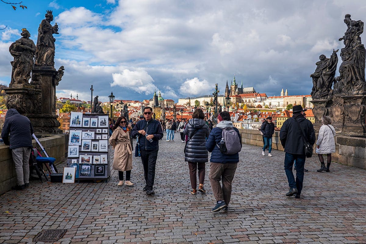 En stor fördel att resa runt i Europa i november är att man slipper trängas med en massa turister. Man kan strosa i lugn och ro. Ta in sevärdheterna. Detta gäller dock inte på Prags främsta turistattraktion, Karlsbron. Här är det smockfullt med folk. Om man googlar ”Karlsbron i Prag” är en av rubrikerna ”Världens vackraste bro?”. Möjligen på håll, men när man befinner sig på bron är det ingen vidare vacker plats. Jag tog några pliktskyldiga foton och lämnade krimskramsförsäljarna, karikatyrtecknarna och grupperna av guidade turer bakom mig.