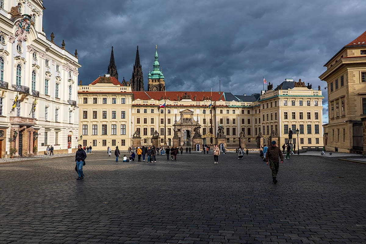 Väl där uppe möts man av ett stort torg omgärdat av ståtliga byggnader och inne i själva borgområdet ligger den stora Sankt Vituskatedralen.