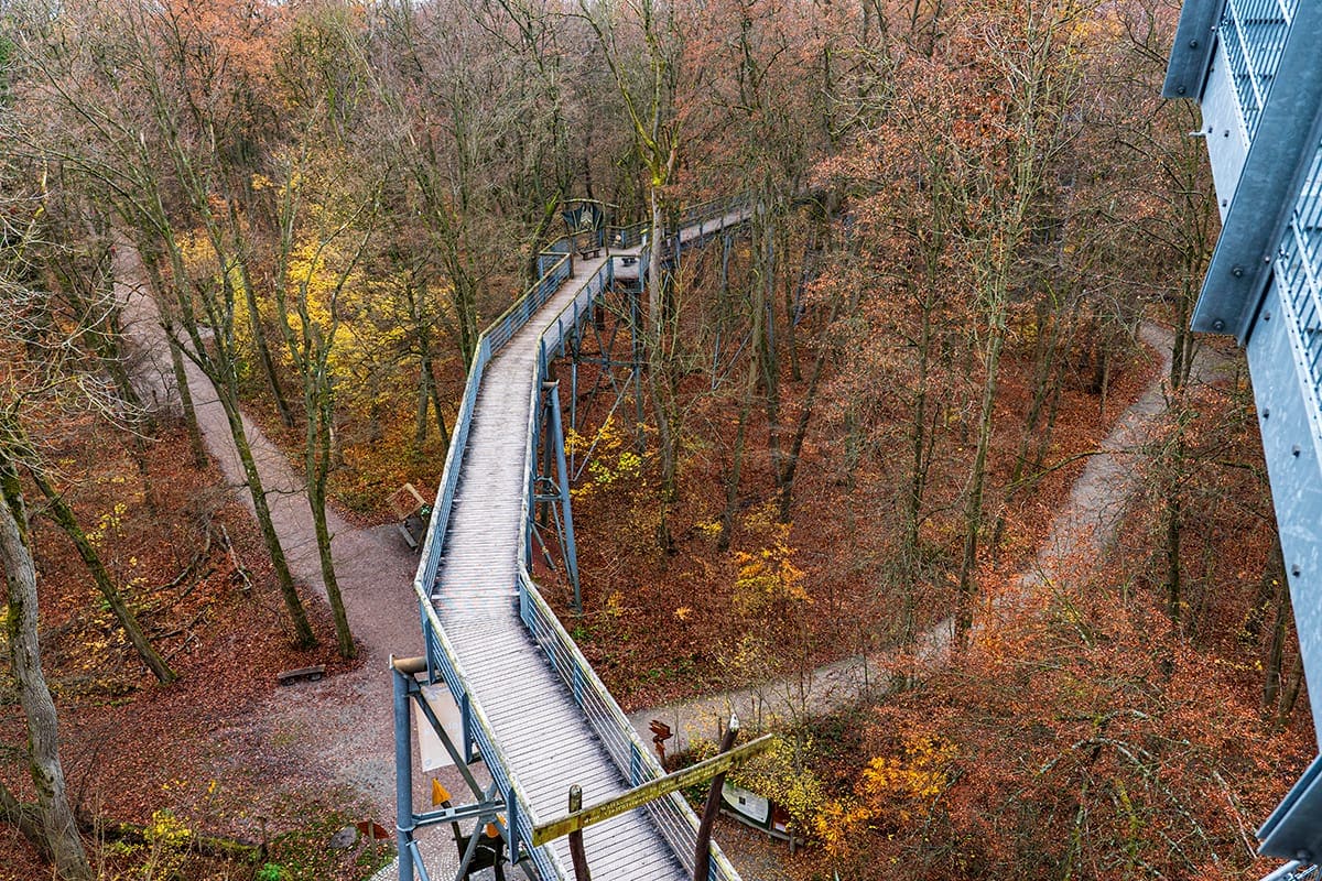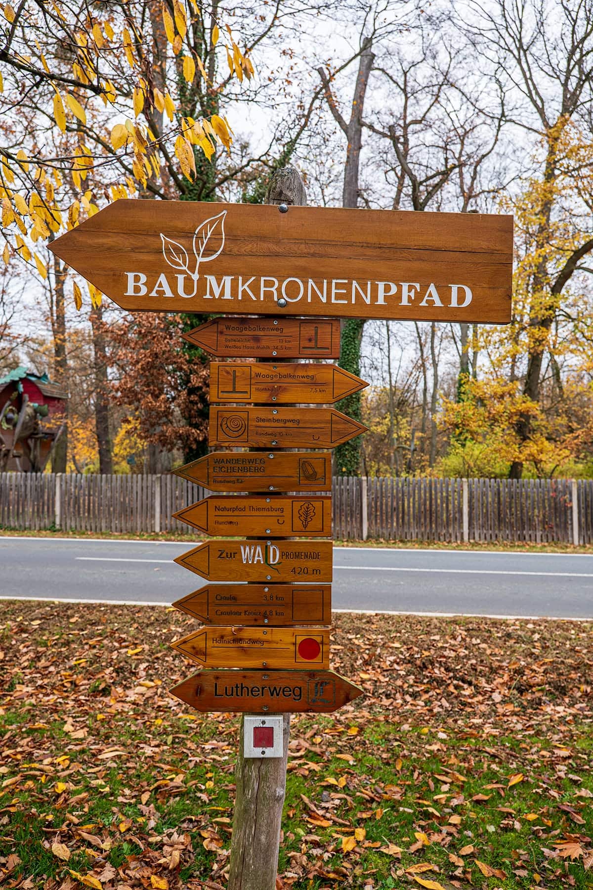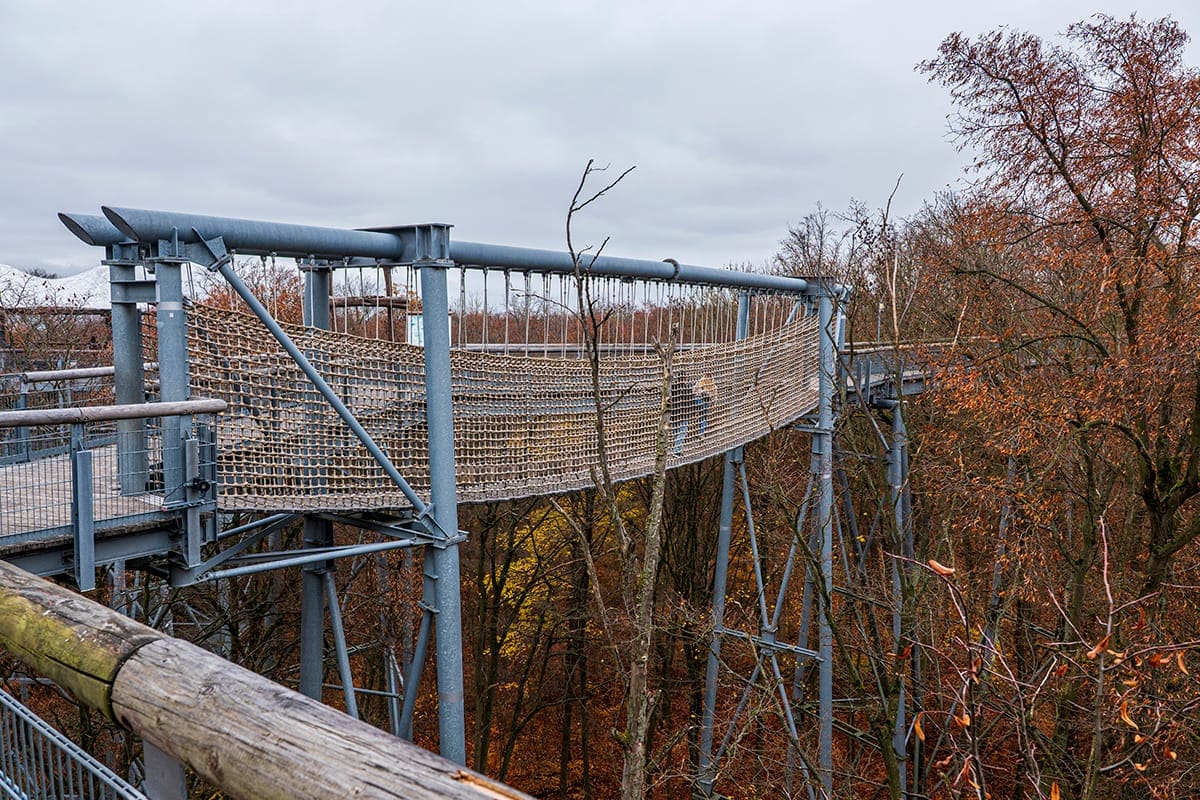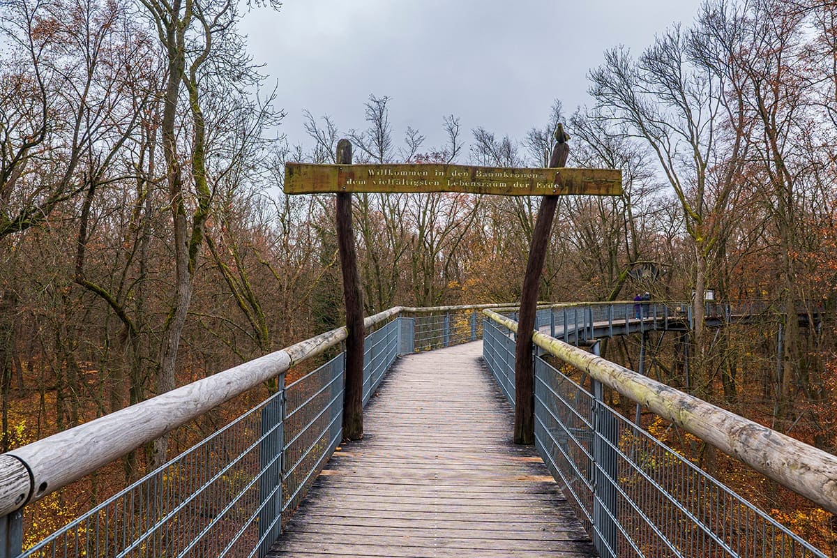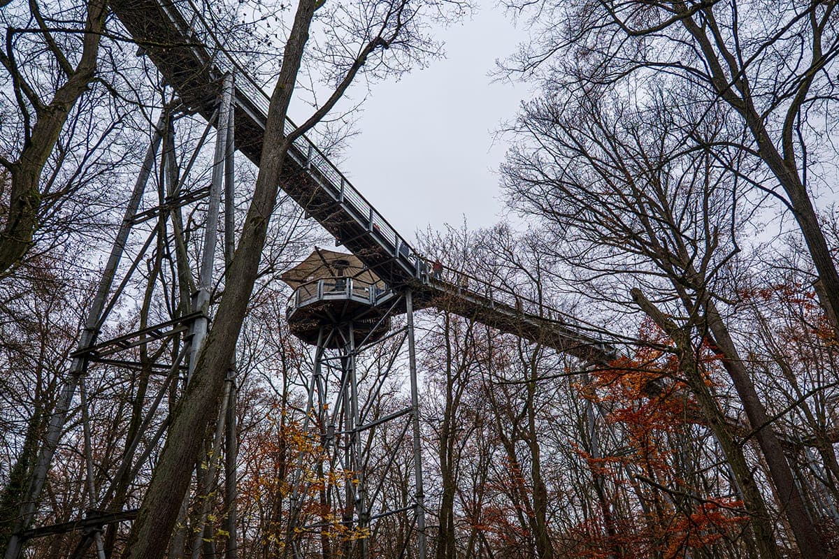 Baumkronenpfad, så heter anledningen till att jag är i Hainich Nationalpark. Det är tyska för trätoppsstig. Man har här byggt en gångväg i formen av en åtta. Den börjar några meter ovanför marken och stiger sakteliga tills man promenerar i höjd med trätopparna.