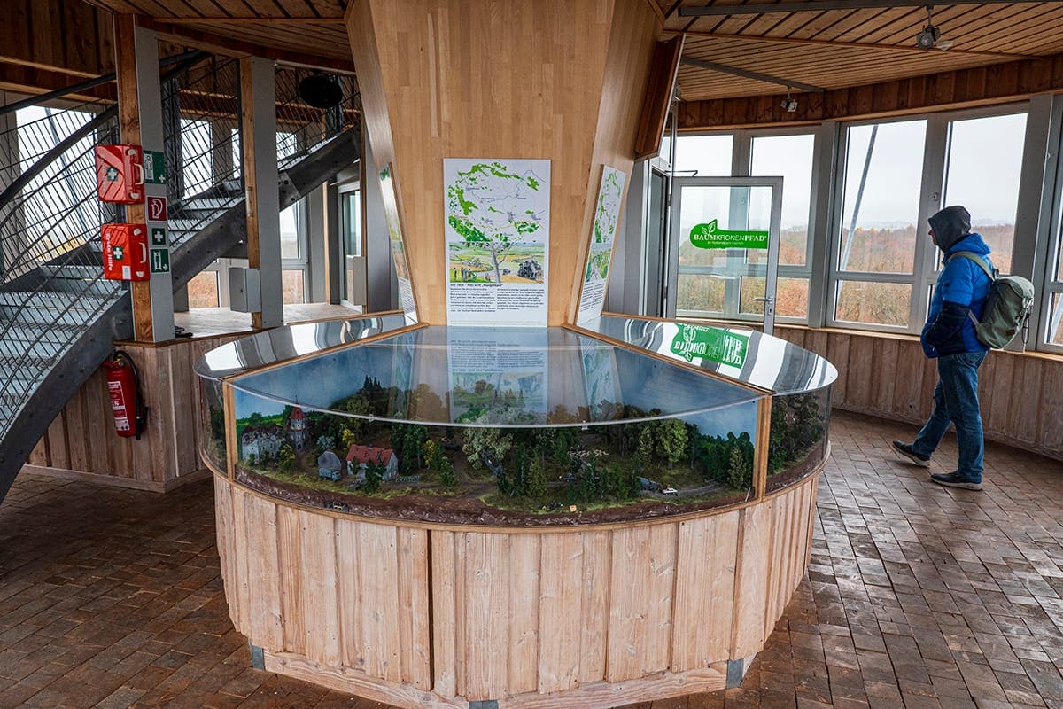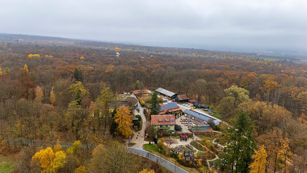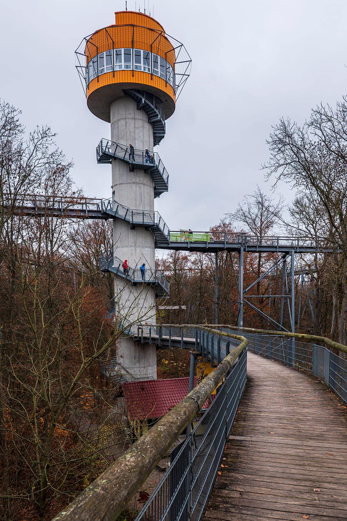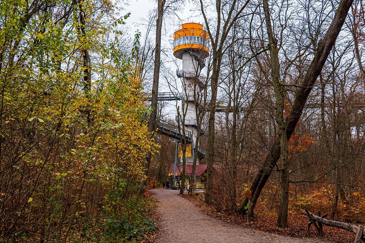 Ett 40 meters utsiktstorn höjer sig över marken.