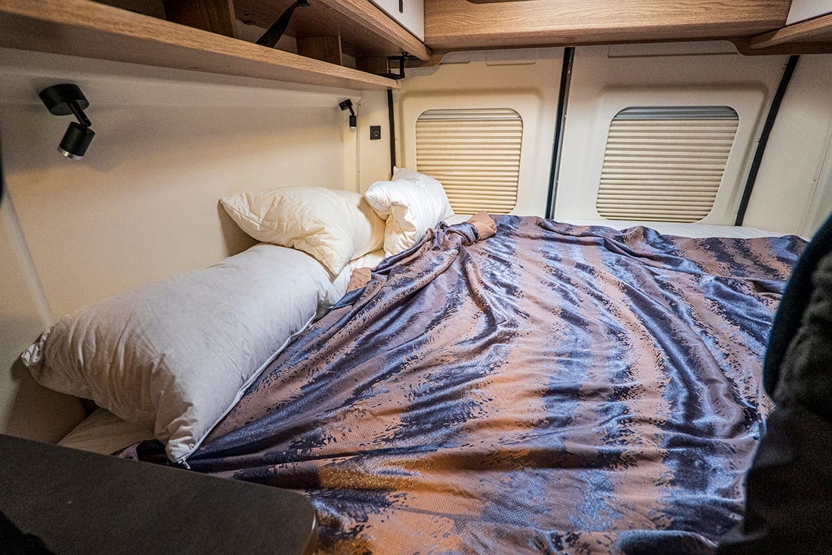Kan med viss lÀttnad konstatera att mitt beröm var befogat. Bilen Àr kort sagt en lyckad tvÀrbÀddsplÄtis. SÀrskilt har jag uppskattat rymden ombord. Jag sitter ledigt i soffan och jobbar. Har massor av bordsyta. Köket har mer förvaring Àn jag behöver och riktigt bra med arbetsyta. SÀngen Àr bekvÀm. Dock har jag valt att ha ett löst fotsteg för att göra det bekvÀmare att komma i och ur sÀngen.