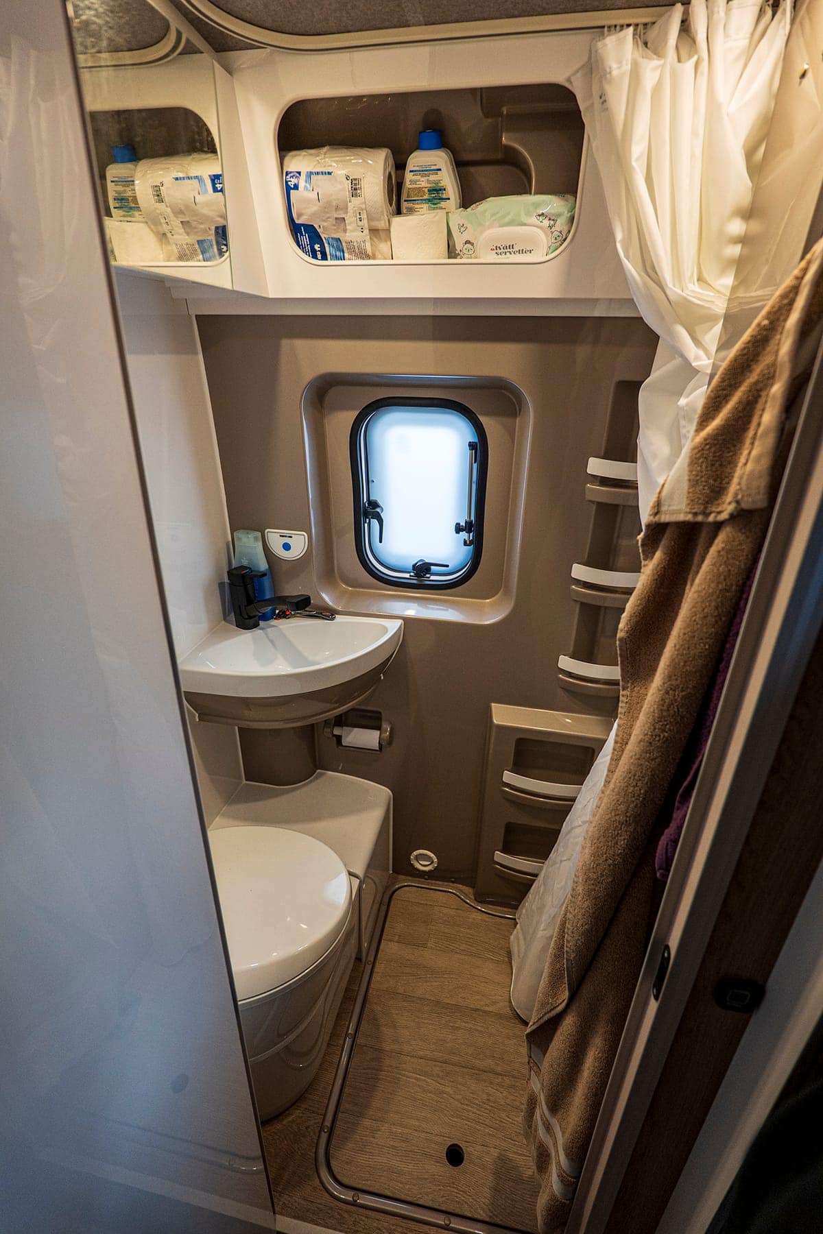Men det jag uppskattat mest Àr nog ÀndÄ badrummet. Det Àr sÄ gott om plats! BÄde nÀr man sitter pÄ toa och nÀr man duschar. Visst, det Àr ett plastigt badrum och det Àr ett duschdraperi som kladdar mot kroppen. Men plast tÄl vatten och duschdraperiet stjÀl inget utrymme sÄsom trolleribadrums snurrvÀggar gör.
