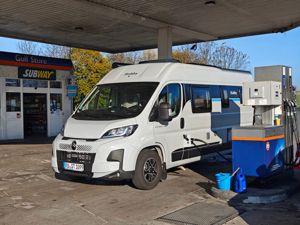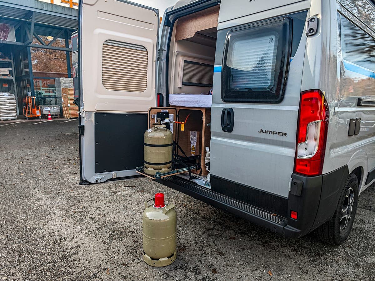 Detta Àr en tyskregistrerad husbil. SÄ jag Äker med tyska flaskor. TvÄ stycken à 11 kg.