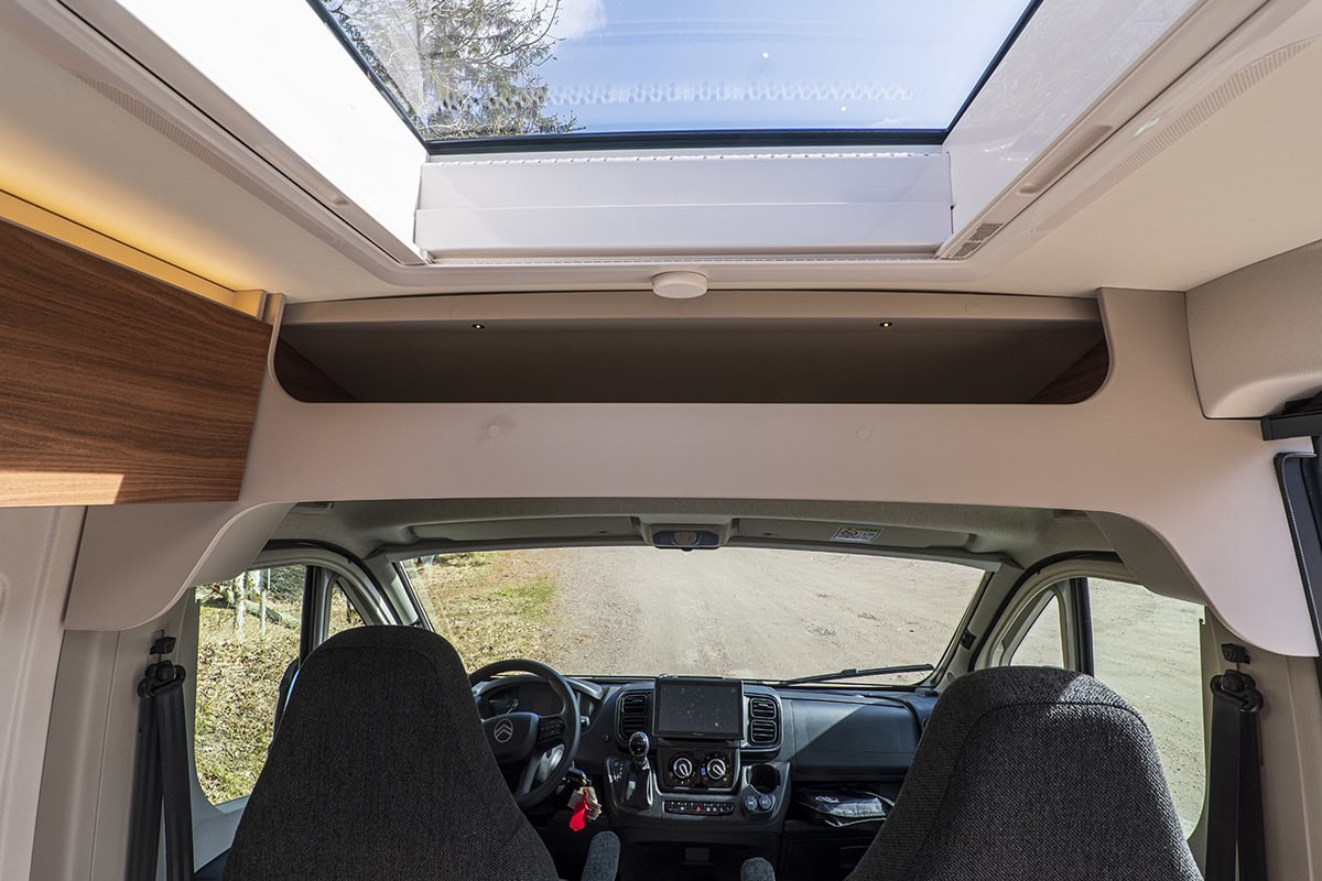 ABS, ESP, antispinn, elhissar, farthållare, dubbla airbags, multiratt, multimediasystem med backkamera, AC motor, induktionshäll med 1 platta, kompressorkylbox, Truma Combi 6DE luftburen dieselvärmare, laddbooster 45A (standard 25A), litiumbatteri 150 Ah (standard 95 Ah AGM).