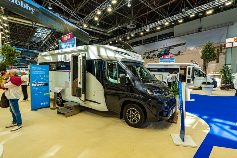På Caravan Salon tog vi en närmare titt på Hobbys senaste modeller. Jag fastnade för två halvintegrerade modeller och ett nytt plåtisbadrum. Av Stefan