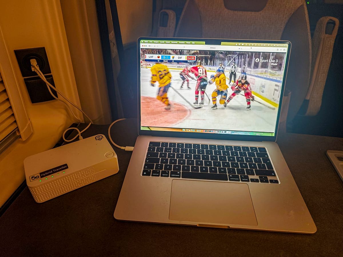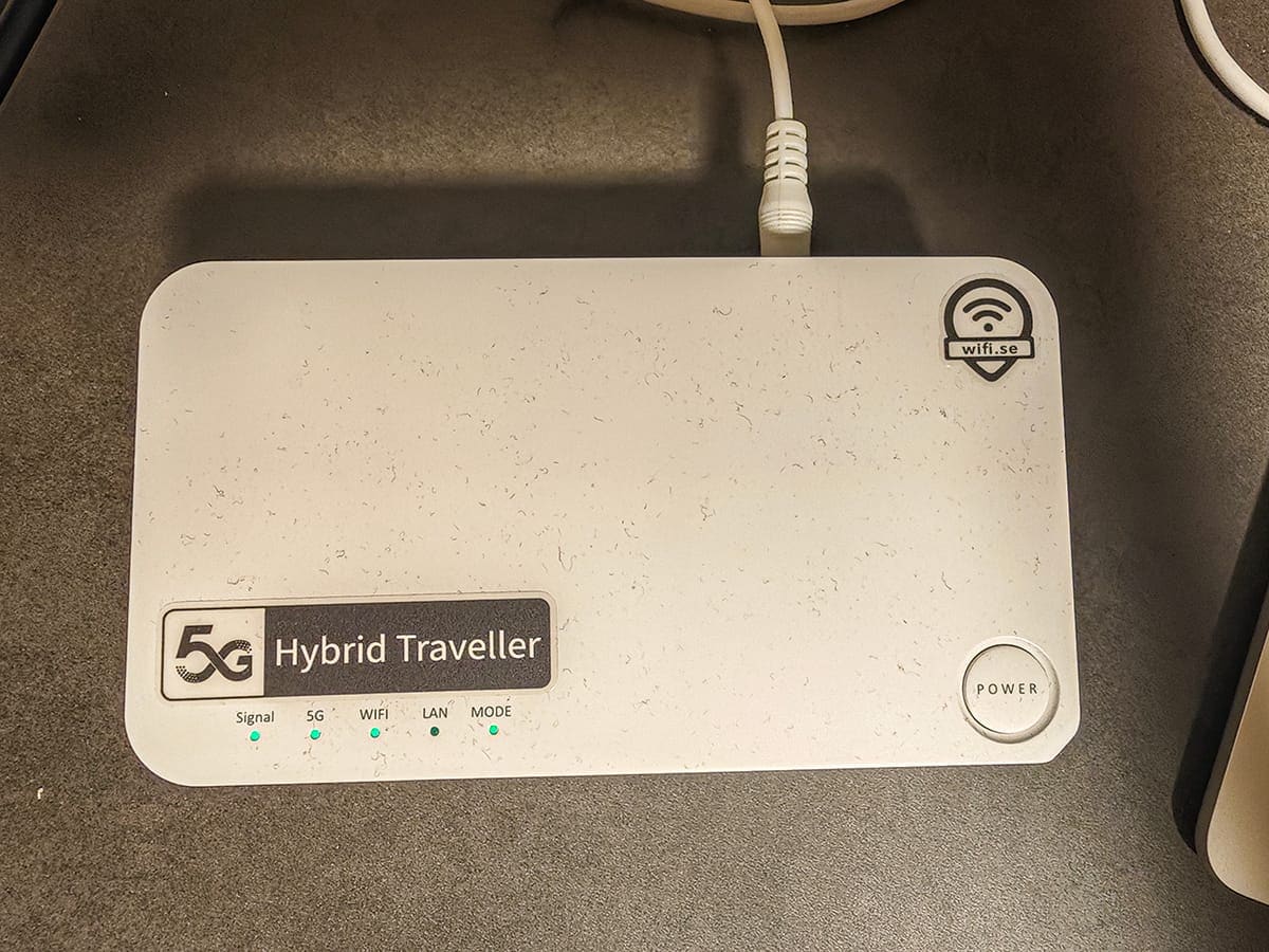 Den bÀst sÀljande routern hos Wifi.se senaste tiden Àr en portabel, eller semiportabel, historia kallad Hybrid Traveller. Det Àr en 5G router som kan anvÀnda de inbyggda batterierna om sÄ önskas. Man kan alltsÄ ta med den om man vill surfa pÄ en bergstopp eller i realtid dela med sig av maten man Àter pÄ nÄgon hipp restaurang. Jag har dock haft den kopplad till 12V under hela resan.